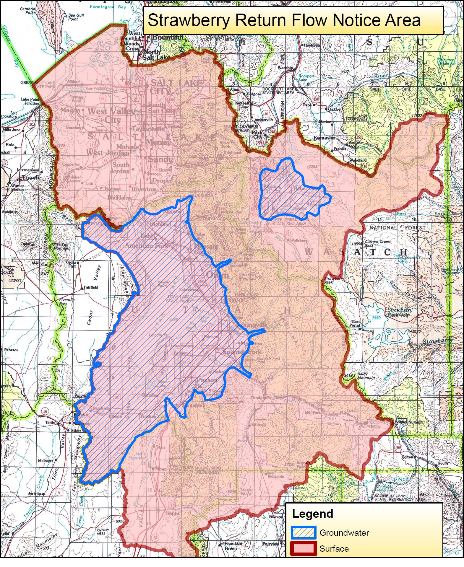 | In the case Strawberry Water Users Association v. Bureau of Reclamation, 2006 UT 19, the Utah Supreme Court instructed the District Court in the Utah Lake - Jordan River General Adjudication (Third Judicial District Court in Salt Lake County) to address the rights to return flow from water imported through the Strawberry Valley Project (SVP) to the Utah Lake drainage. The Supreme Court case may be found at http://www.utcourts.gov/opinions/supopin/Strawberry032406.pdf The District Court has now established a procedure to notify potentially affected parties and to address the issue. |